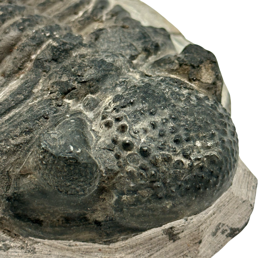 One-of-a-kind Trilobite fossil found in the deserts of Morocco. This rare and unique specimen offers a glimpse into the Earth's ancient past, making it a valuable addition to any fossil collection.